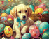 Werden Sie Künstler mit dem DIY-Set “Malen nach Zahlen - Der Hund mit der blauen Schleife und dem Osterei”